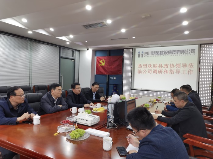 3月24日下午,县政协经济委主任尚昆、副主任刘子永,原主任张宗培、副主任蓝宇宁等领导莅临四川明昊建设集团有限公司调研和指导工作。
