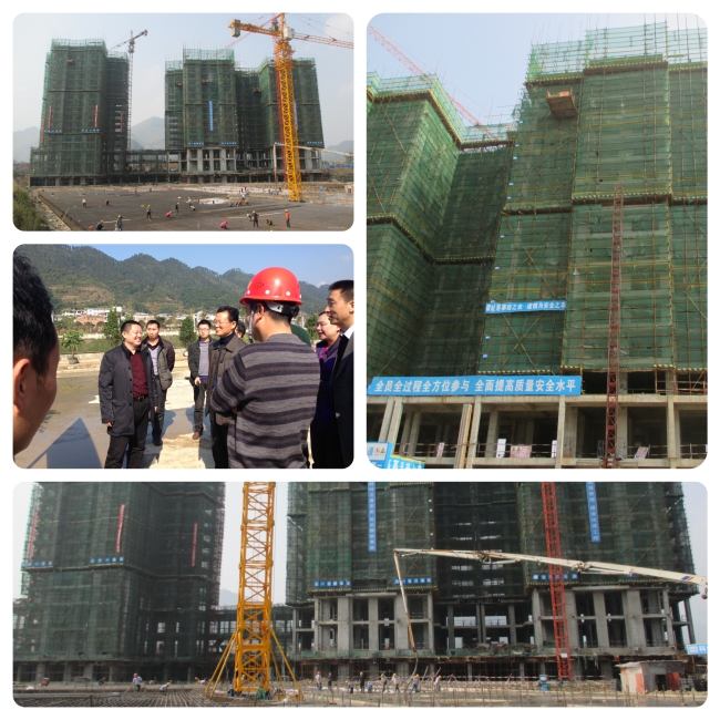 2014年11月25日,宜宾市委、县委领导在建设单位相关人员的陪同下,对四川怀德房地产投资开发有限公司开发建设的“筠州国际社区”项目的建设情况进行了视察指导工作。 在“筠州国际社区”项目工地,宜宾市委、县委领导深入施工现场,实地查看了工程施工情况,在听取工地负责人的汇报后,他要求工程负责人要按照科学的方法制订施工计划和措施,不能一味的求进度、赶速度,要坚持质量第一的原则,把好工程质量关。同时,在施工作业时要配好安全生产工具,有安全才有进度、才有质量,要常敲安全警钟。